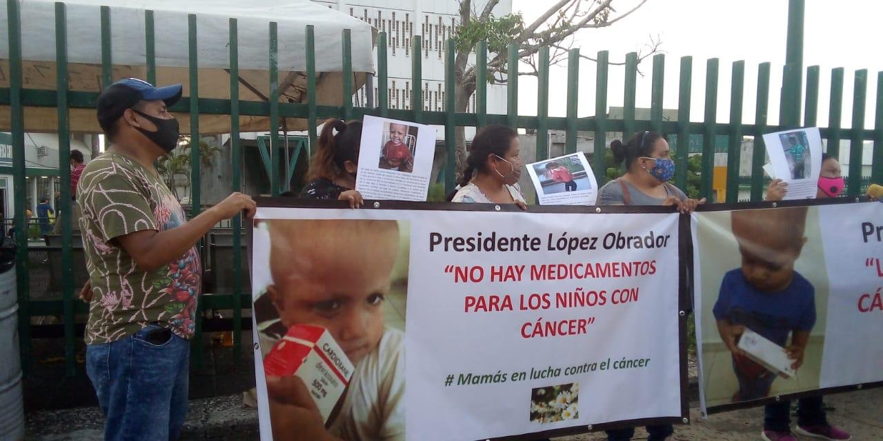 Con pancartas donde se leen mensajes como «Presidente López Obrador, la vida de los niños con Cáncer esta en sus manos», «Presidente López Obrador, no hay medicamentos para los niños con cáncer», exigieron al mandatario federal, fármacos para las quimioterapias de sus hijos.