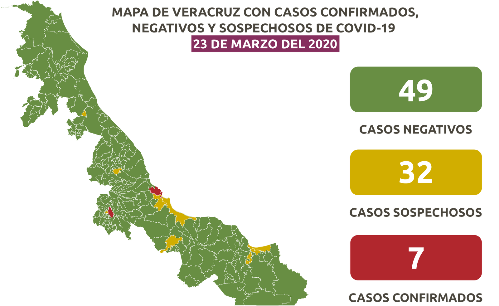 El número de positivos permanece en 7 (4 hombres y 3 mujeres), de los que cuatro radican en Boca del Río, dos en Veracruz y uno en Ixtaczoquitlán. Actualmente, se da seguimiento a 111 contactos declarados, incluidos los de casos positivos.