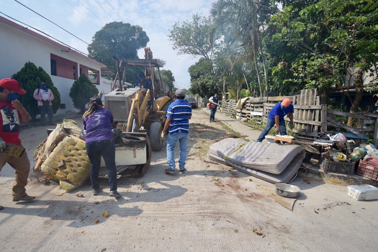 Cuadrillas de trabajadores y equipo de la Secretaría de Servicios Públicos retiran casa por casa colchones, muebles, llantas en desuso, envases y demás objetos inservibles, así como los que se encuentran en la vía pública, solares baldíos, canales pluviales y en inmuebles no cercados.