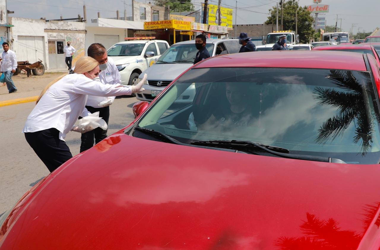 Acatando puntualmente las indicaciones de la Secretaría de Salud de Tamaulipas y dentro del reforzamiento de las acciones establecidas por el Gobierno Municipal de Altamira para la prevención de casos de COVID-19, se activó un filtro sanitario en el Bulevar Allende y calle Zaragoza para concienciar a la gente sobre el uso del cubrebocas y de otras medidas tendientes a evitar contagios.