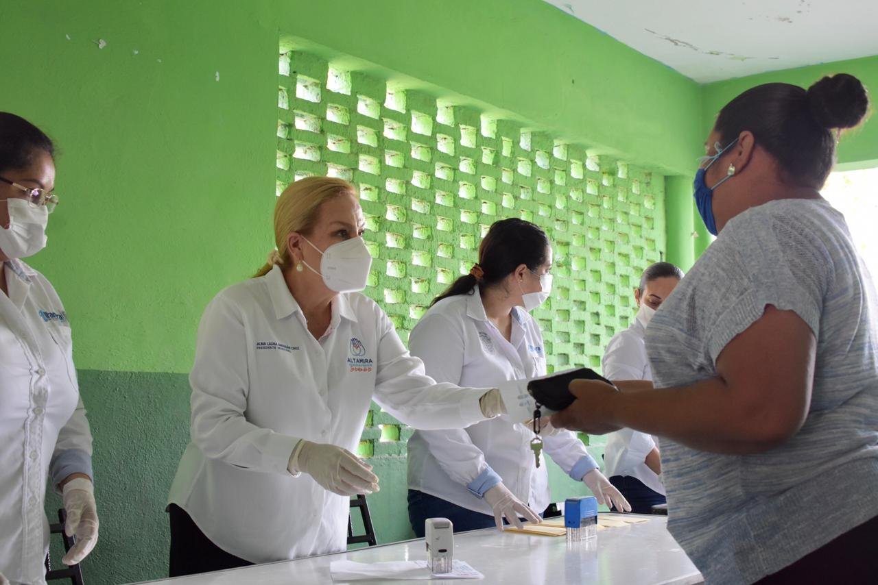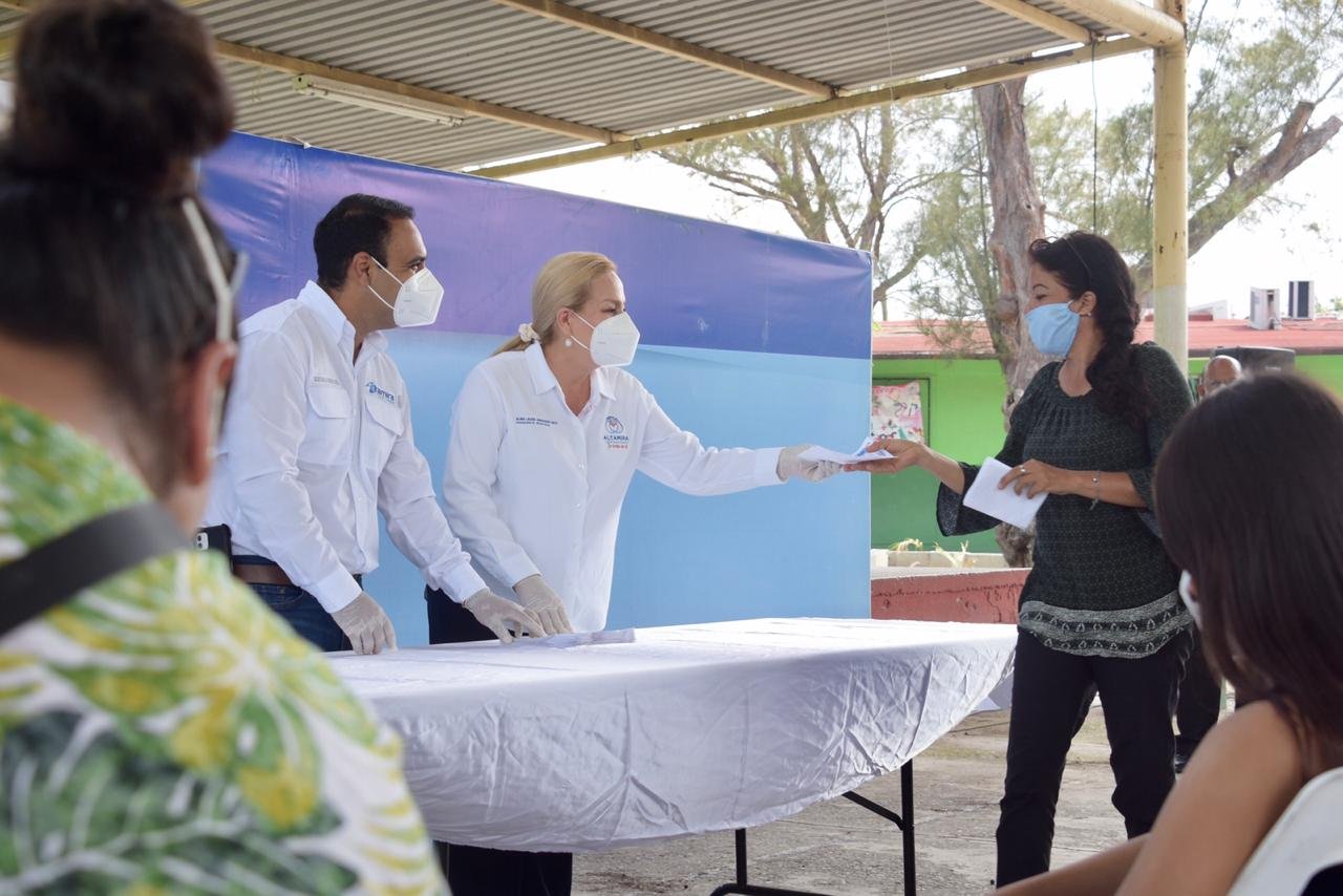 Continuando con la entrega de becas educativas del programa “Se Trata de Ti”, así como del esquema enfocado al reforzamiento del tejido social “Cumpliendo mi Sueño”, la presidenta municipal de Altamira, Alma Laura Amparán Cruz, trasladó estos beneficios a los sectores Francisco I. Madero, Laguna de la Puerta, Francisco Villa y Monte Alto.