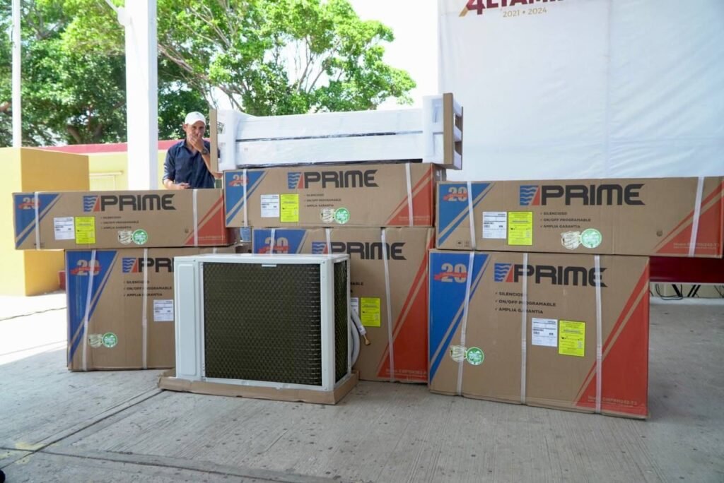 Para Mitigar Altas Temperaturas, Entrega Armando Martínez Manríquez Climas a Escuela de la Col. Bahía