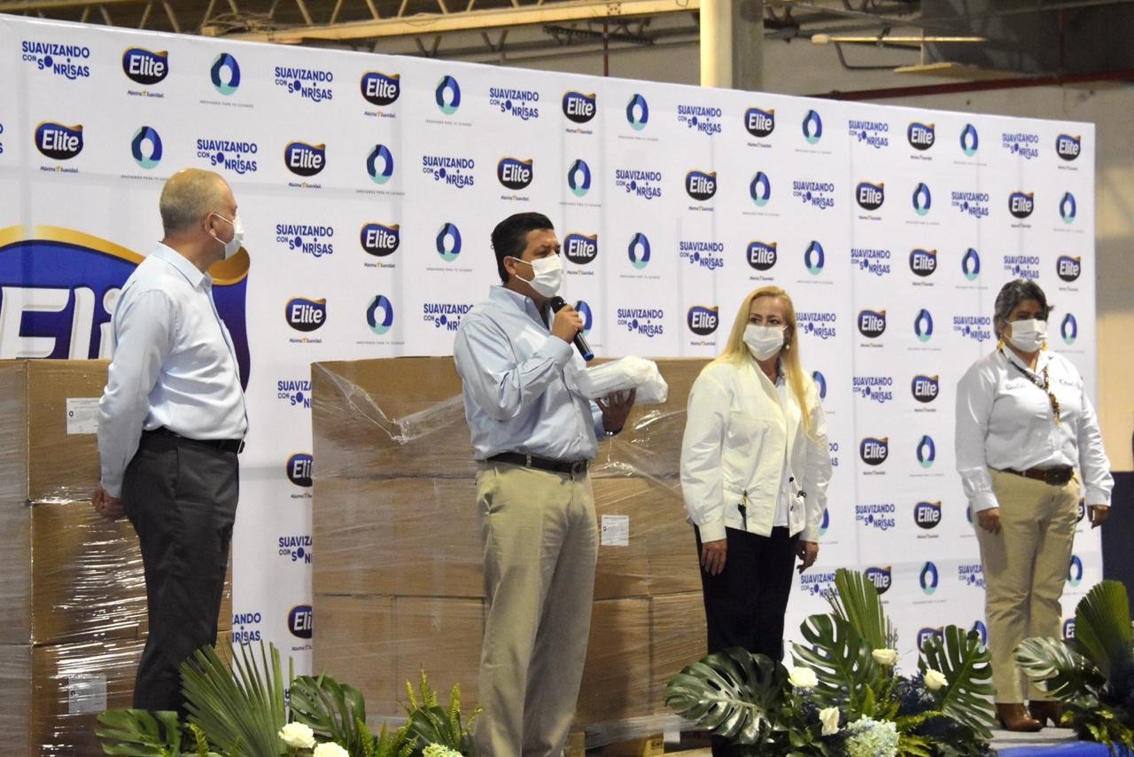 De igual manera, la empresa Elite hizo entrega de 450 mil cubrebocas al Gobierno de Tamaulipas, recibiendo esta donación el gobernador Francisco García Cabeza de Vaca.