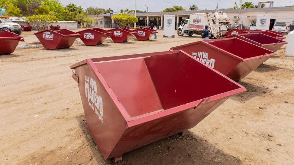 Fue en las instalaciones de la Dirección de Servicios Públicos, donde el mandatario municipal acompañado por su director Zamir Shahin Zamudio, dijo que serán un total de 200 contenedores los que estarán ubicados por todas las colonias maderenses a fin de evitar que los desechos sean depositados en vialidades o canales pluviales.