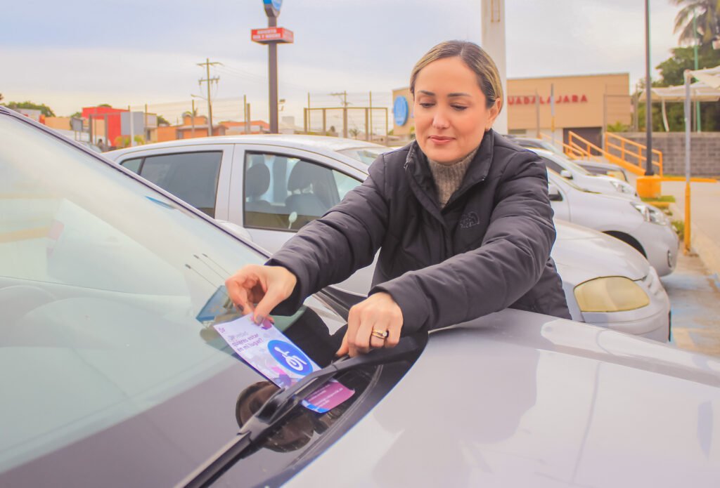 La primera dama en el municipio, colocó en el parabrisas de las unidades que utilizaban dichos cajones, un flyer informativo sobre lo que representa para las  personas con discapacidad que sus espacios sean invadidos.