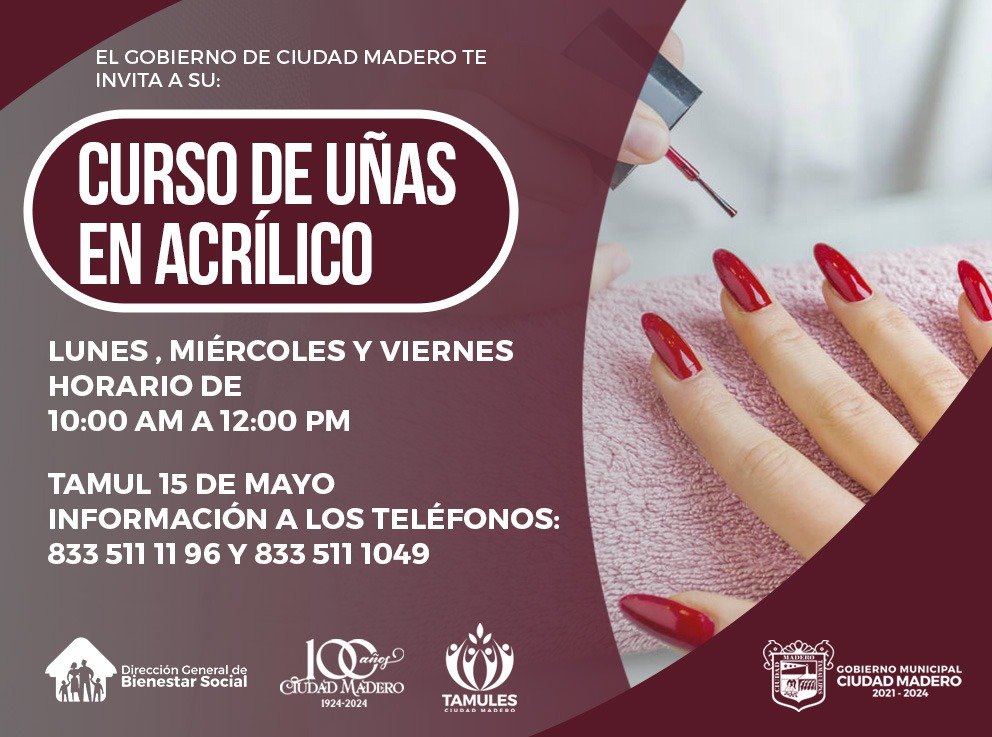 Como parte de las actividades de impulso al autoempleo, el Gobierno de Ciudad Madero a través de la Dirección de Bienestar Social, invita a la ciudadanía a participar en los cursos de uñas en acrílico, bisutería y zumba que se imparten de manera gratuita en los Centros Tamul 15 de Mayo y Francisco Villa.