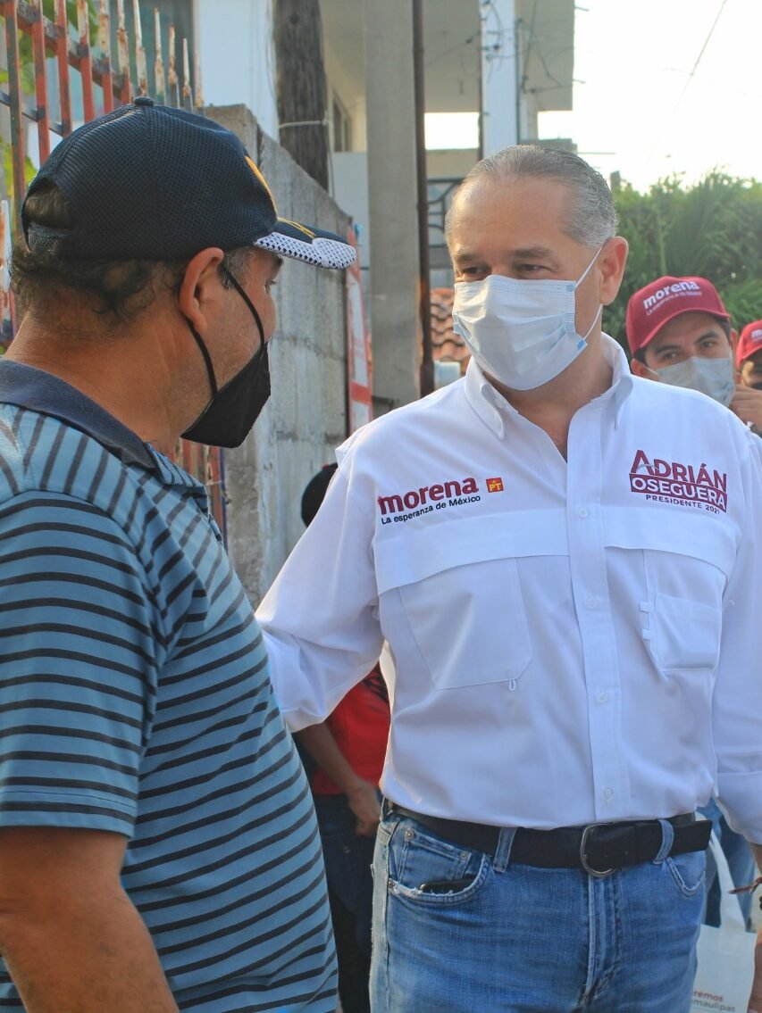 Adrián Oseguera Kernion aspirante morenista a la alcaldía de Ciudad Madero, hará trascender a este municipio en imagen urbana y espacios públicos, así lo destacó durante su recorrido de este lunes en la colonia Miguel Hidalgo Poniente.
