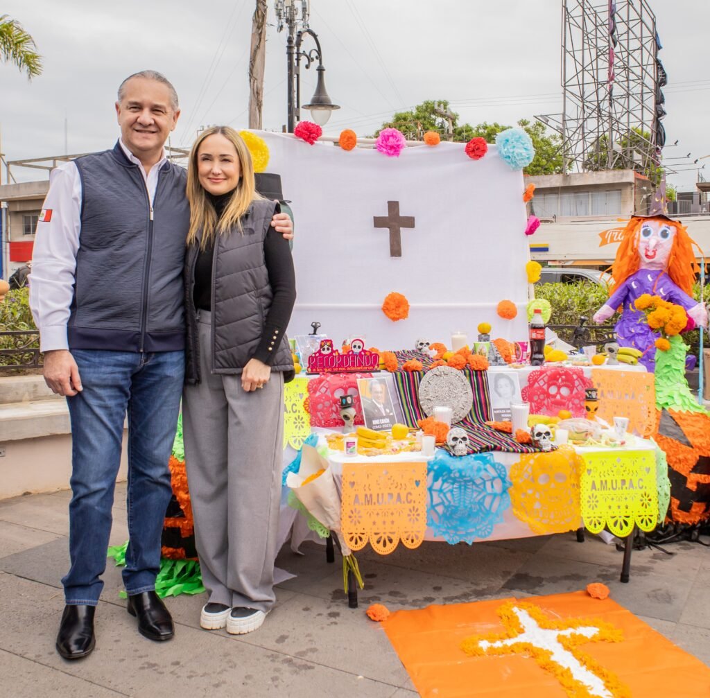 Acompañado por su esposa, la Sra. Ana Cristina Organista de Oseguera, presidenta del DIF Madero y por su mamá, la Sra. Tula Kernion Bolado, el Munícipe recorrió los altares elaborados por distintas Direcciones municipales, expresando en cada uno de ellos, una extraordinaria riqueza cultural.