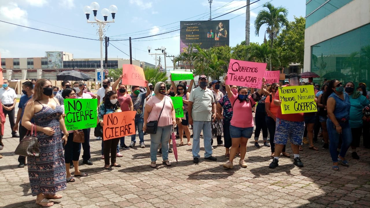 Cd. Madero, Tamaulipas.- Un grupo de comerciantes del primero y segundo cuadro de la ciudad, formales e informales, acudieron al ayuntamiento de Ciudad Madero para solicitar a las autoridades les permitan seguir trabajando como hasta ahora, y no cerrarle sus negocios afectando con ello su economía.