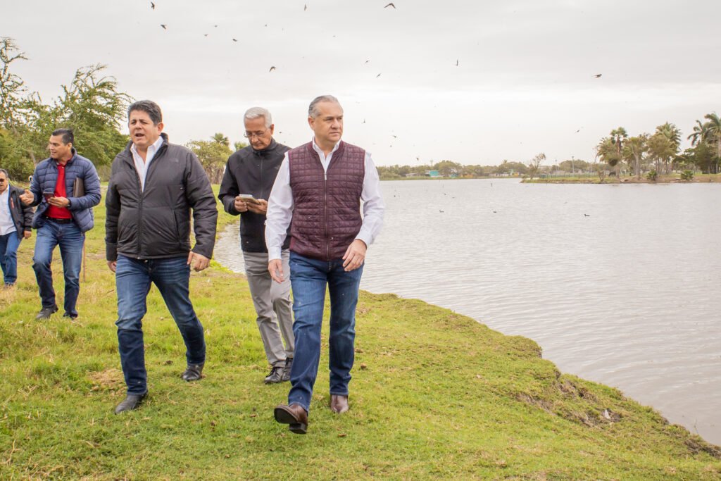 En ese tenor, el Presidente Municipal acompañado por el director de Servicios Públicos, Zamir Shahin Zamudio y el director general de Obras Públicas, Luis Carlos Leal Contreras, realizó una supervisión de las labores efectuadas en este cuerpo lagunario, donde fueron sembradas palmeras del Vivero Municipal.