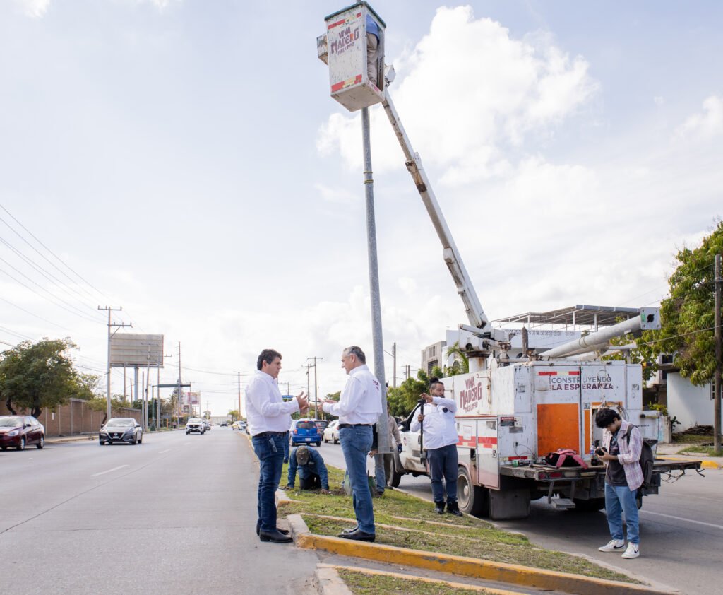 Al ser la tranquilidad de las familias maderenses un eje prioritario en el Gobierno del alcalde Adrián Oseguera Kernion, se redoblan acciones para dar mantenimiento a más luminarias de la urbe petrolera.