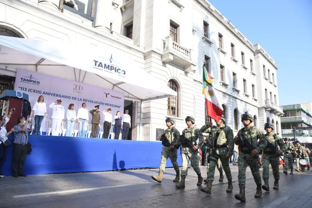 «Hoy Tampico vive momentos que quedarán marcados en nuestra historia. Somos una ciudad que se ha convertido en un gran polo de desarrollo económico y turístico, somos además la ciudad más segura de México; y todo ello gracias a la sinergia que hemos construido con la Mesa Ciudadana de Seguridad y Justicia; y con la participación estratégica de la Secretaría de Marina, el Ejército Mexicano, la Guardia Nacional, la Policía Estatal y los diferentes organismos sociales y empresariales. Hoy reafirmamos nuestro compromiso con los ideales de la revolución, construyendo un Tampico donde la justicia y la igualdad prevalezcan siempre y donde la llama patriótica de los que impulsaron la Revolución siga brillando en nuestros corazones», puntualizó.