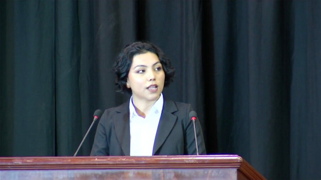 El mensaje a nombre de los becarios estuvo a cargo de Linda Jazmín Gutiérrez Arenas, estudiante de la Facultad de Derecho y Ciencias Sociales Tampico, quien aseguró que esta beca es resultado del esfuerzo y la motivación personal, así como del compromiso y la perseverancia.