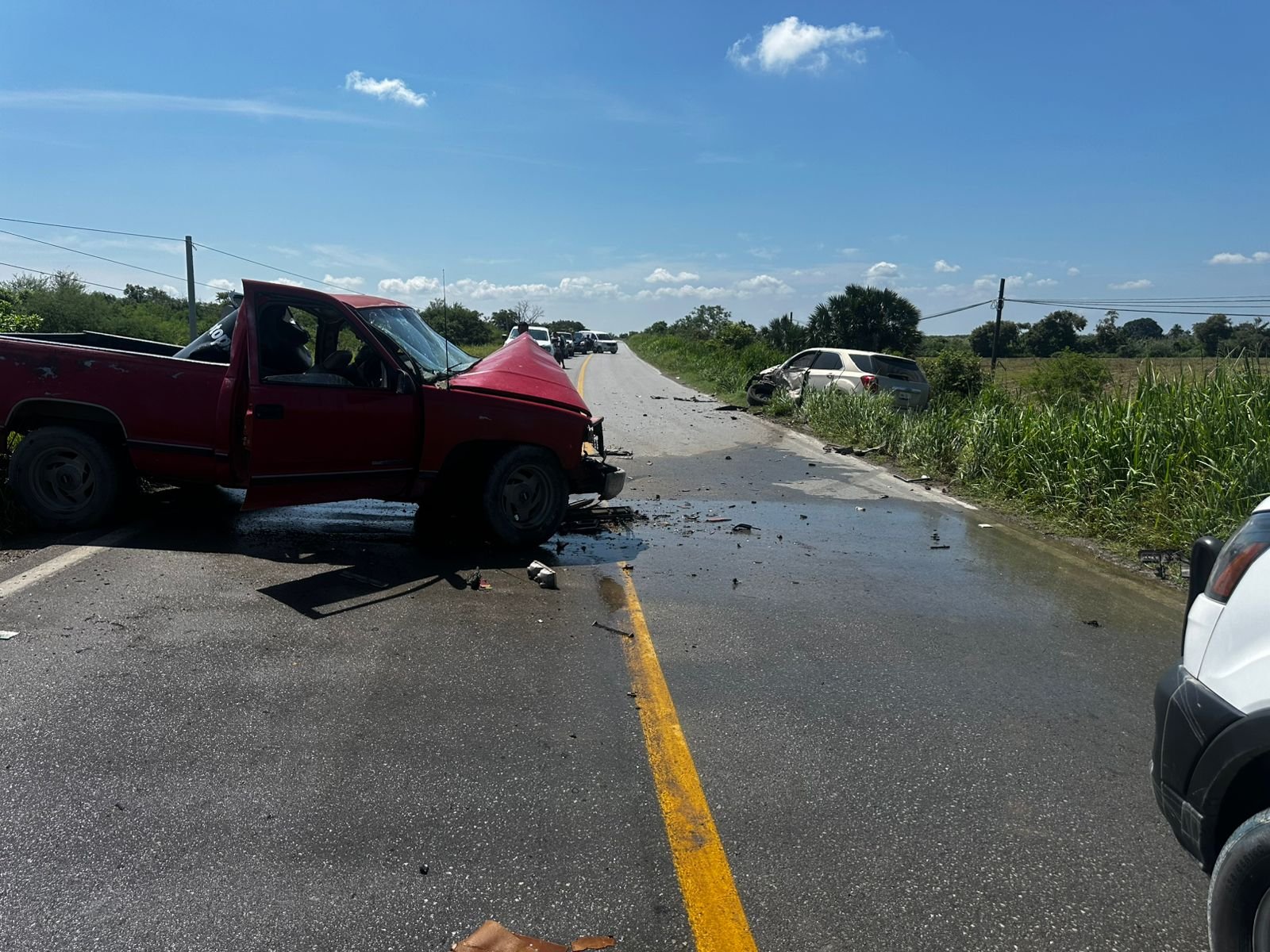 Fuerte choque entre camionetas en la carretera Manuel–González deja tres lesionados
