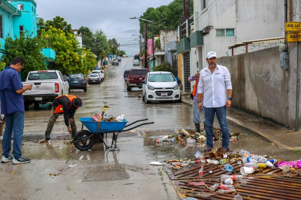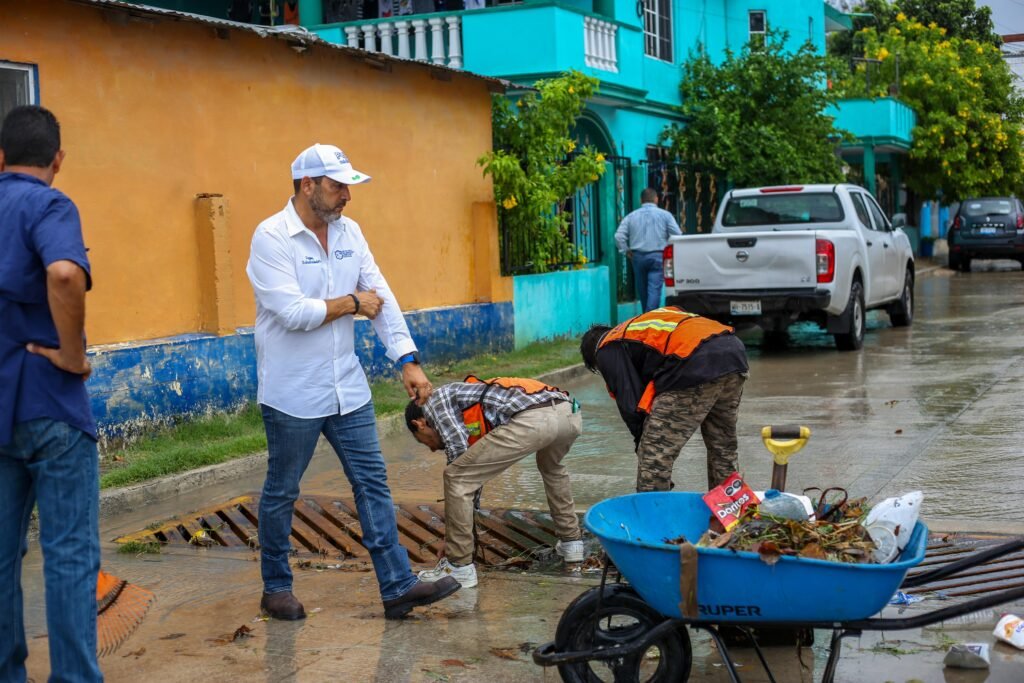“Tenemos la instrucción del Presidente Chucho Nader de atender todos los sectores susceptibles a sufrir las consecuencias de las lluvias”, y agregó que las cuadrillas de Servicios Públicos trabajaron intensamente en la limpieza también de rejillas de la ciudad para que el agua corra con fluidez y evitar inundaciones y estancamientos de agua en las vialidades.