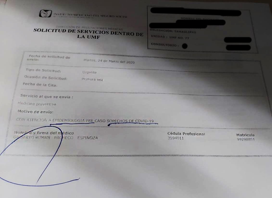 «Estoy muy molesta por esta situación, la persona trae en su receta indicado como probable coronavirus y no es posible que dada la contingencia que tenemos y si hay un probable caso ellos mismos llamar a los responsables de Epidemiologia para que vayan por la persona, se lo lleven y lo pongan en cuarentena, pero no, la persona andaba con la receta preguntando donde estaba esa área «.