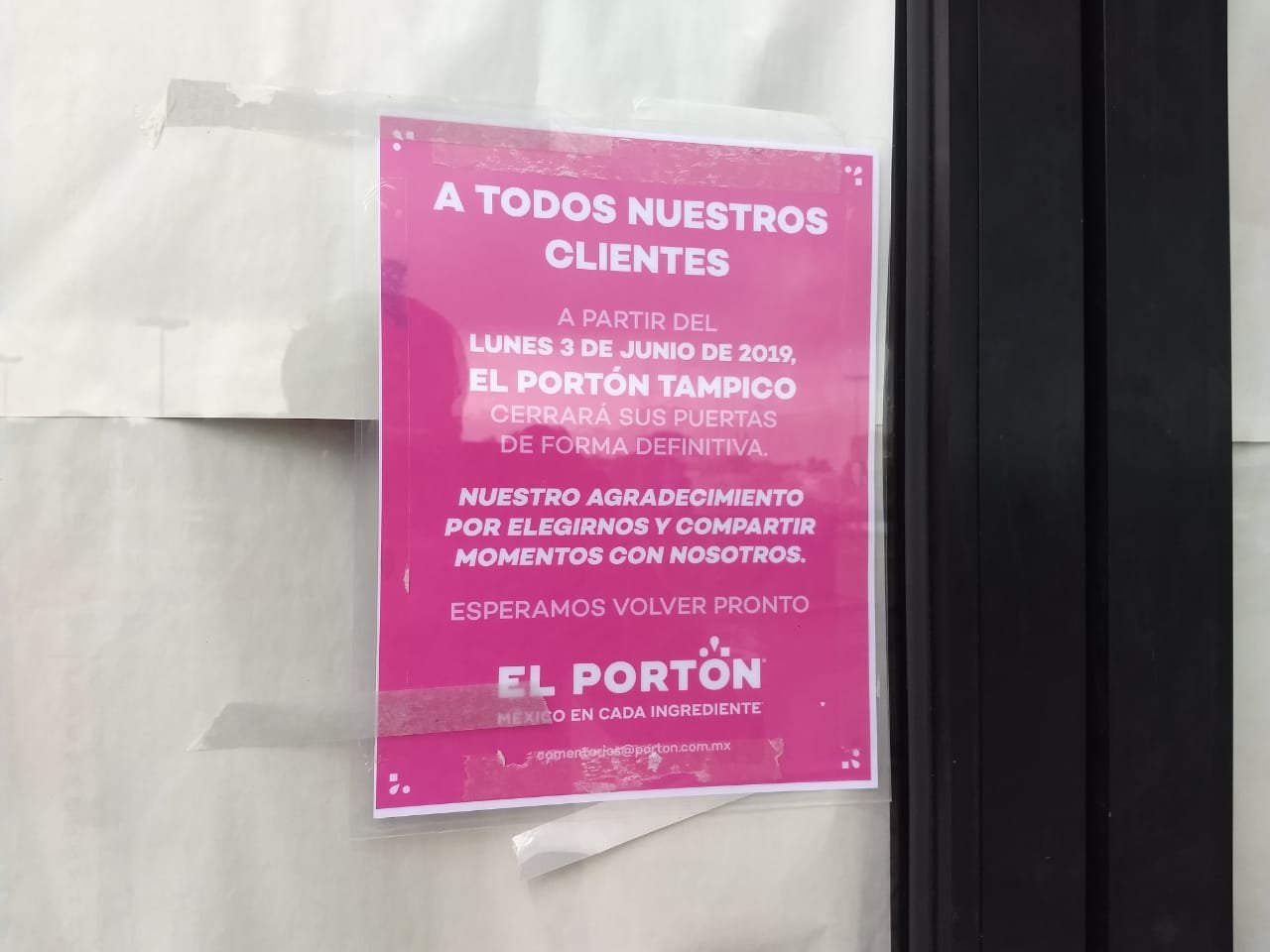 Inicio junio y con este el cierre del único restaurante de la cadena El Portón que se ubica en Tampico.
