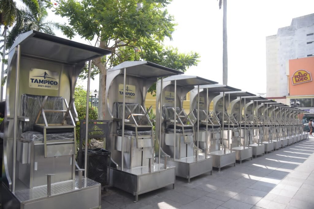 Chucho Nader detalló que los 37 módulos para el aseo de calzado serán ubicados en las plazas de Armas, Libertad e Hijas de Tampico y ofrecerán una identidad homologada al gremio de los boleros.