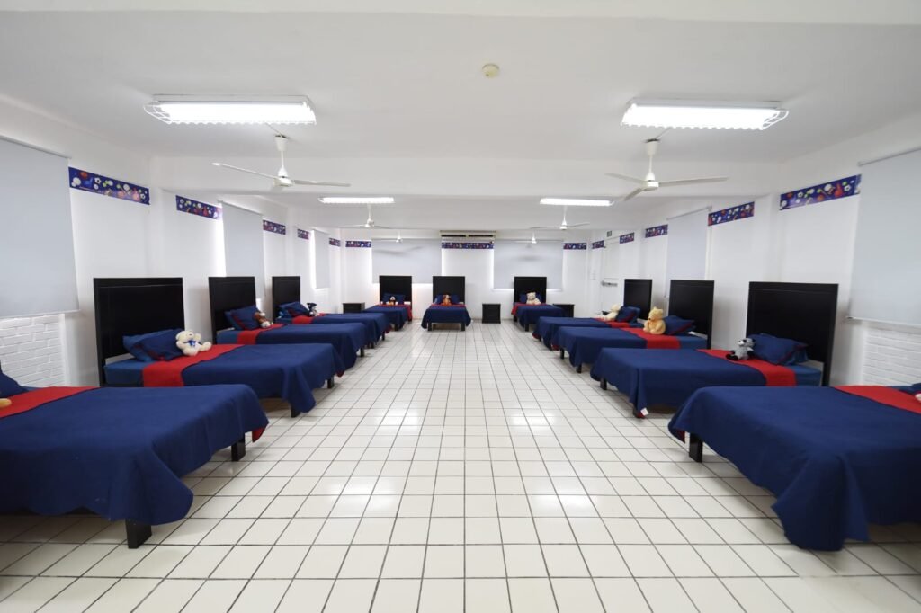 “Iniciamos con la impermeabilización al 100 por ciento, se cambió, además, todo el sistema eléctrico, se compraron equipos de aire acondicionado y abanicos para las diferentes áreas. Remodelamos los dormitorios de niños y niñas, dejándolos nuevos. Compramos 25 recámaras y sus complementos; así como organizadores de ropa, dos salas y pantallas de televisión. Los baños de cada área están totalmente remodelados, cambiamos pisos y azulejos, se compraron regaderas, mezcladoras, sanitarios y espejos, para que todo esté limpio e impecable”, detalló.