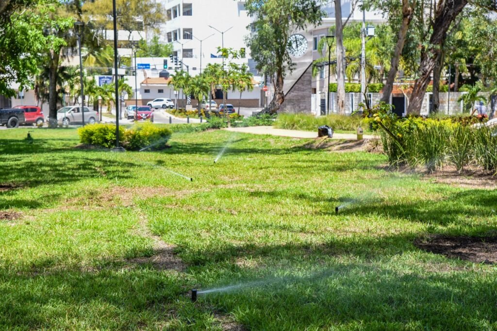 Señaló que con el propósito de mantener vivas las áreas verdes y optimizar recursos, se han instalado sistemas de riego automatizados en los diferentes parques públicos de la ciudad.