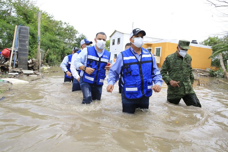 Fueron 45 las colonias afectadas, 23 de ellas en mayor grado, y el resto con inundaciones parciales, y en el recorrido, Francisco García Cabeza de Vaca entregó kits de limpieza, agua potable, comida caliente y paquetes alimenticios, beneficios que están siendo entregados diariamente en los sectores mayormente afectados.
